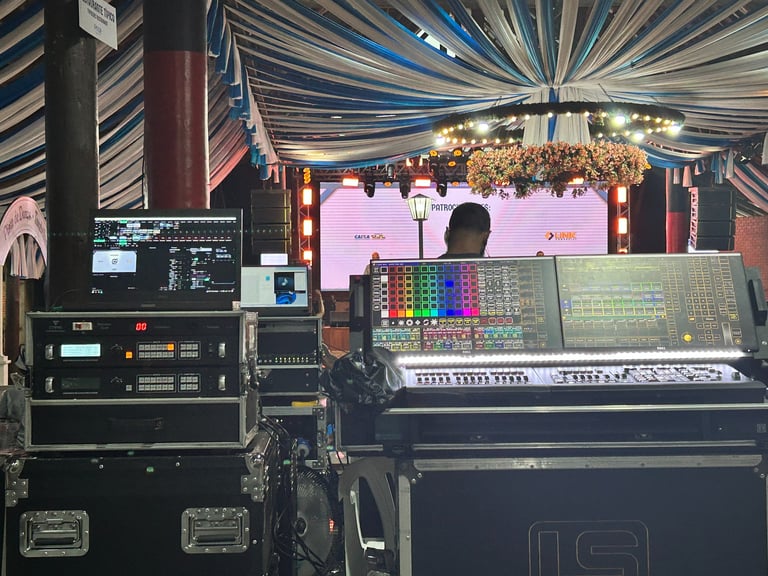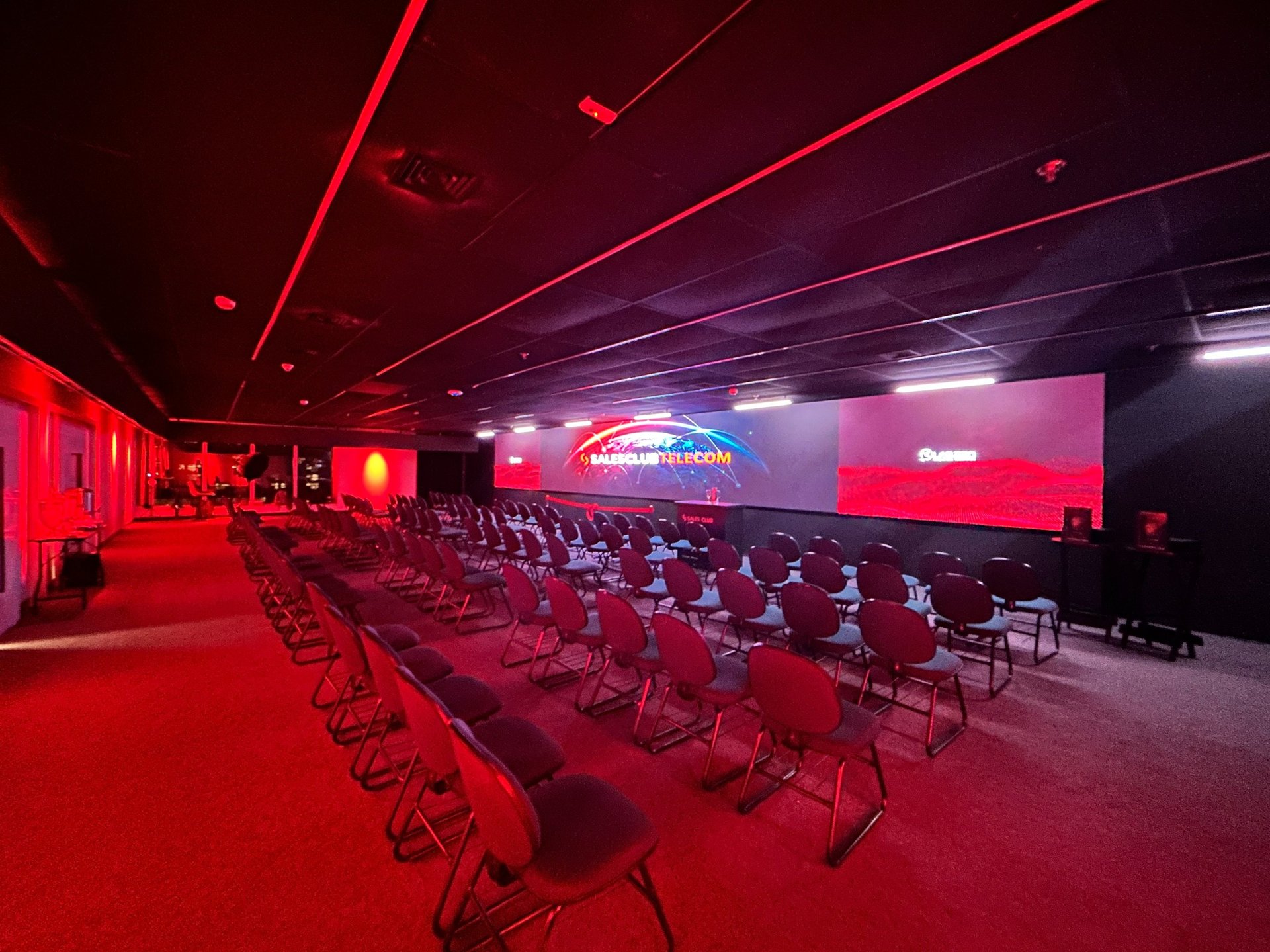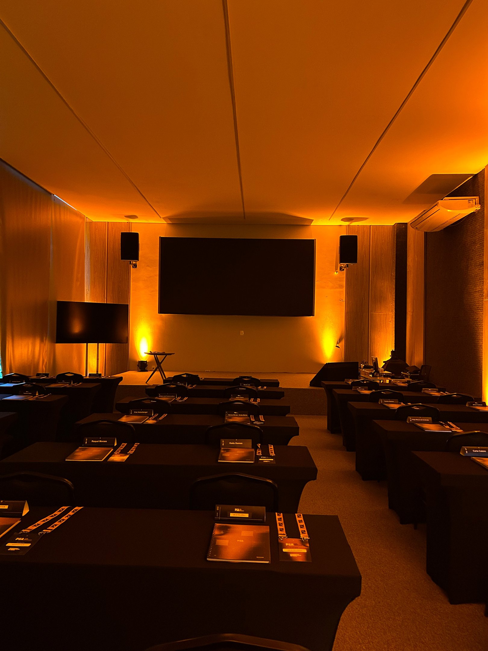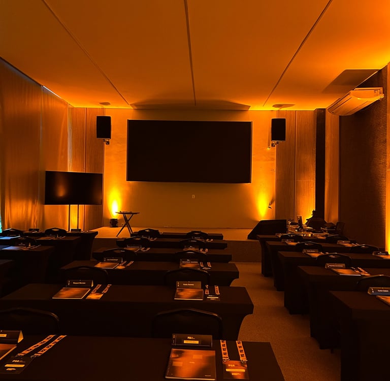 Iluminação personalizada que transforma o ambiente, criando atmosferas únicas para cada ocasião, seja uma festa social ou evento institucional.