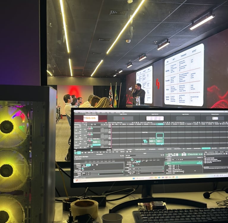 Painéis de LED de alta definição para apresentações impactantes, exibindo conteúdos visuais que envolvem e impressionam o público.
